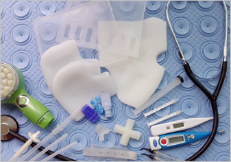 환자의 신체나 치료에 직접 응용되는 실리콘 제품 의료장비와 기기에 응용하는 제품.