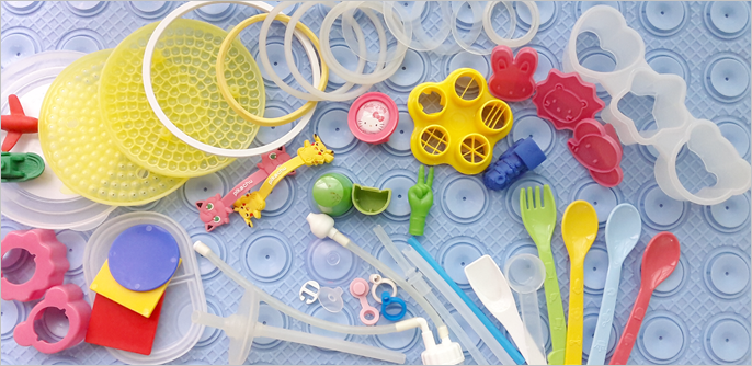 유아용(수유용) 젖꼭지,가짜 젖꼭지, 유축기 나팔, 유축기 Hoses, 치아 발육기, 칫솔, 파운데이션 스폰지, 각종 유아용 장난감, 유아용 머그컵의 빨대, 코 흡입기용 Hoses